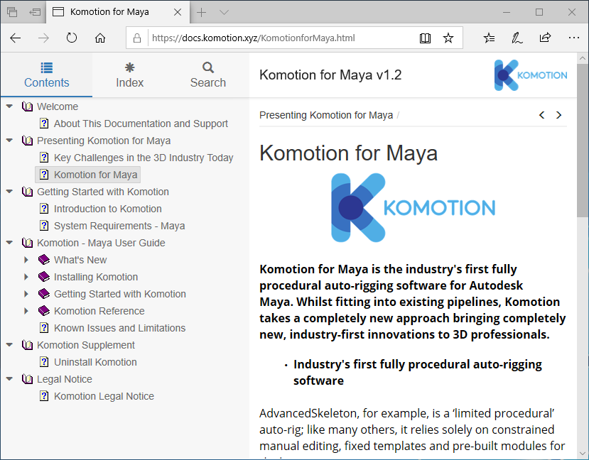 Detailed reference docs and technical guides, extensively covering Komotion software